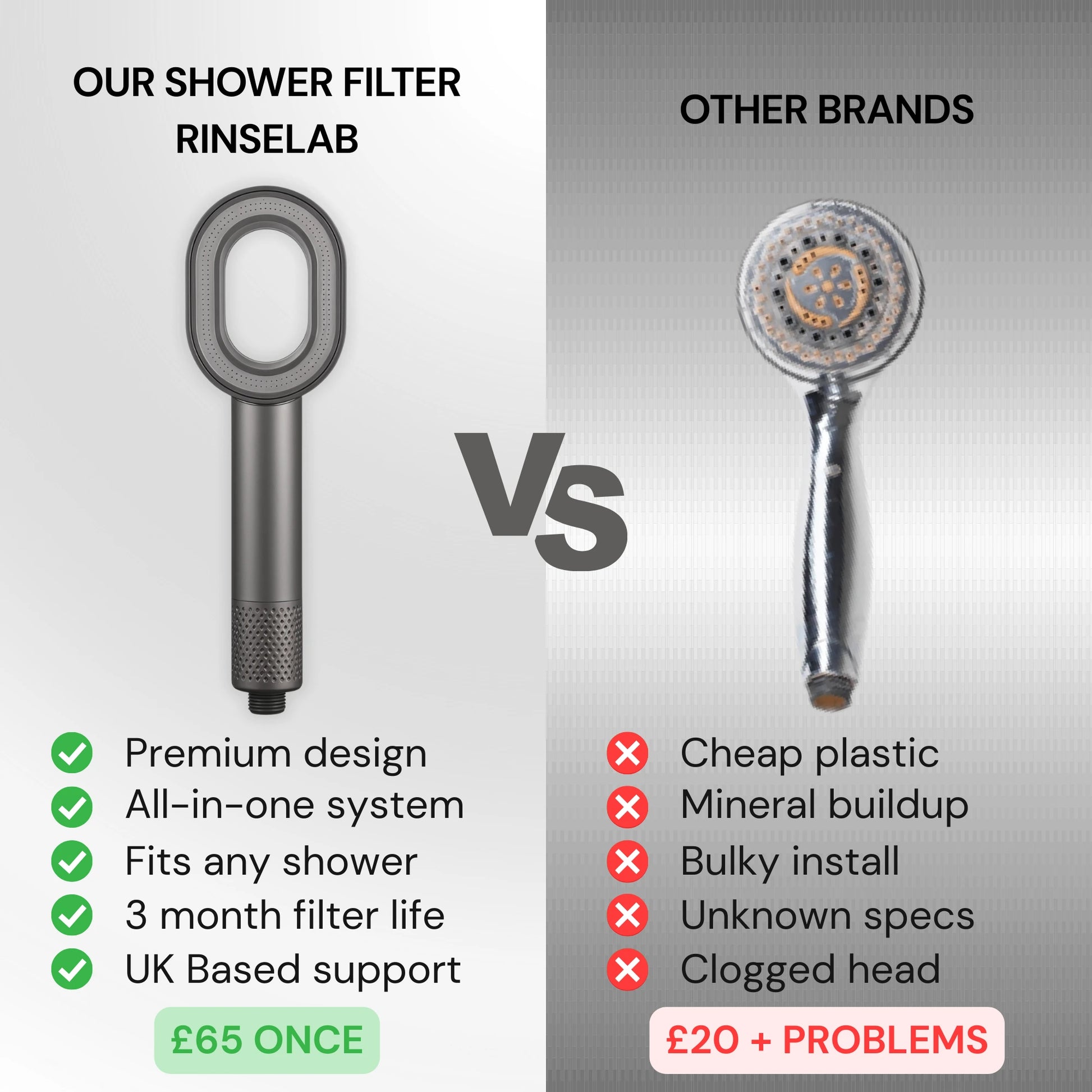Fits 99% Of UK Showers. Standard ½" BSP thread. Screws on in 60 seconds. No tools, no marks, no angry landlords.