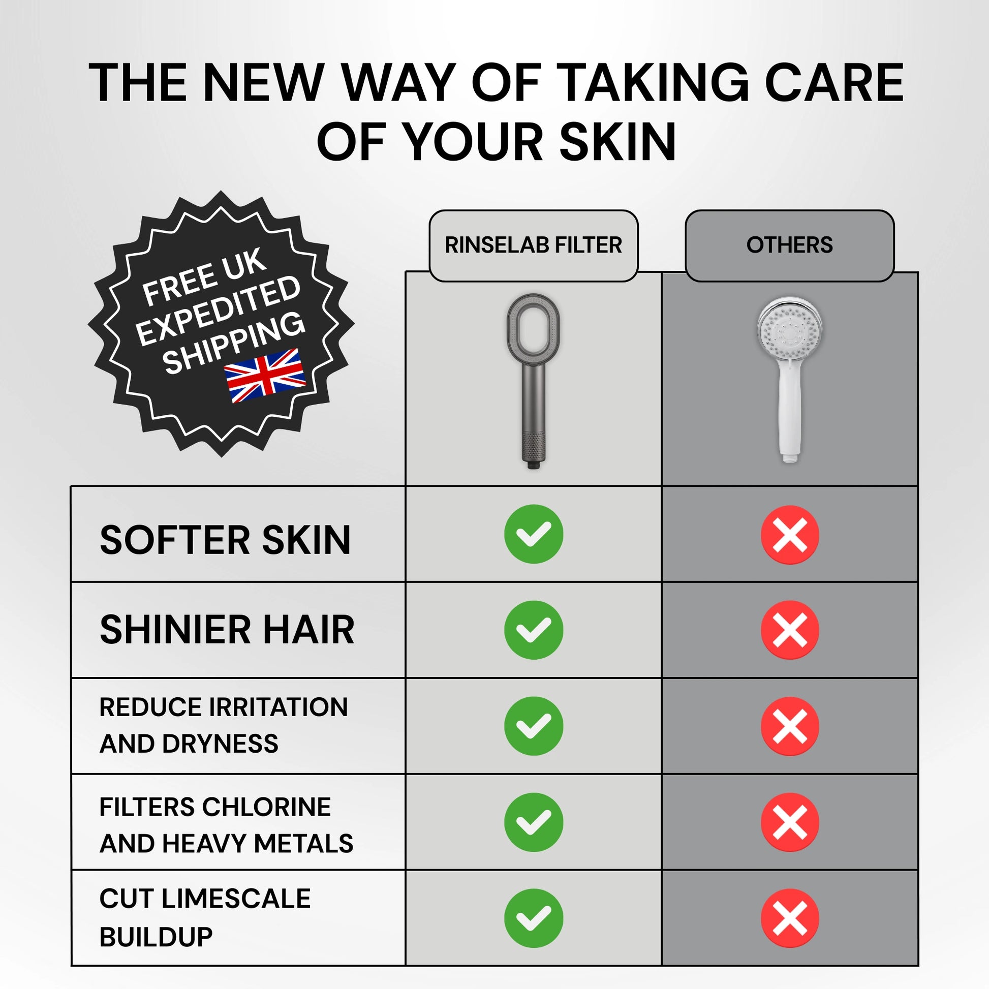 Rinselab™ transforms your daily shower into a skin-friendly experience.